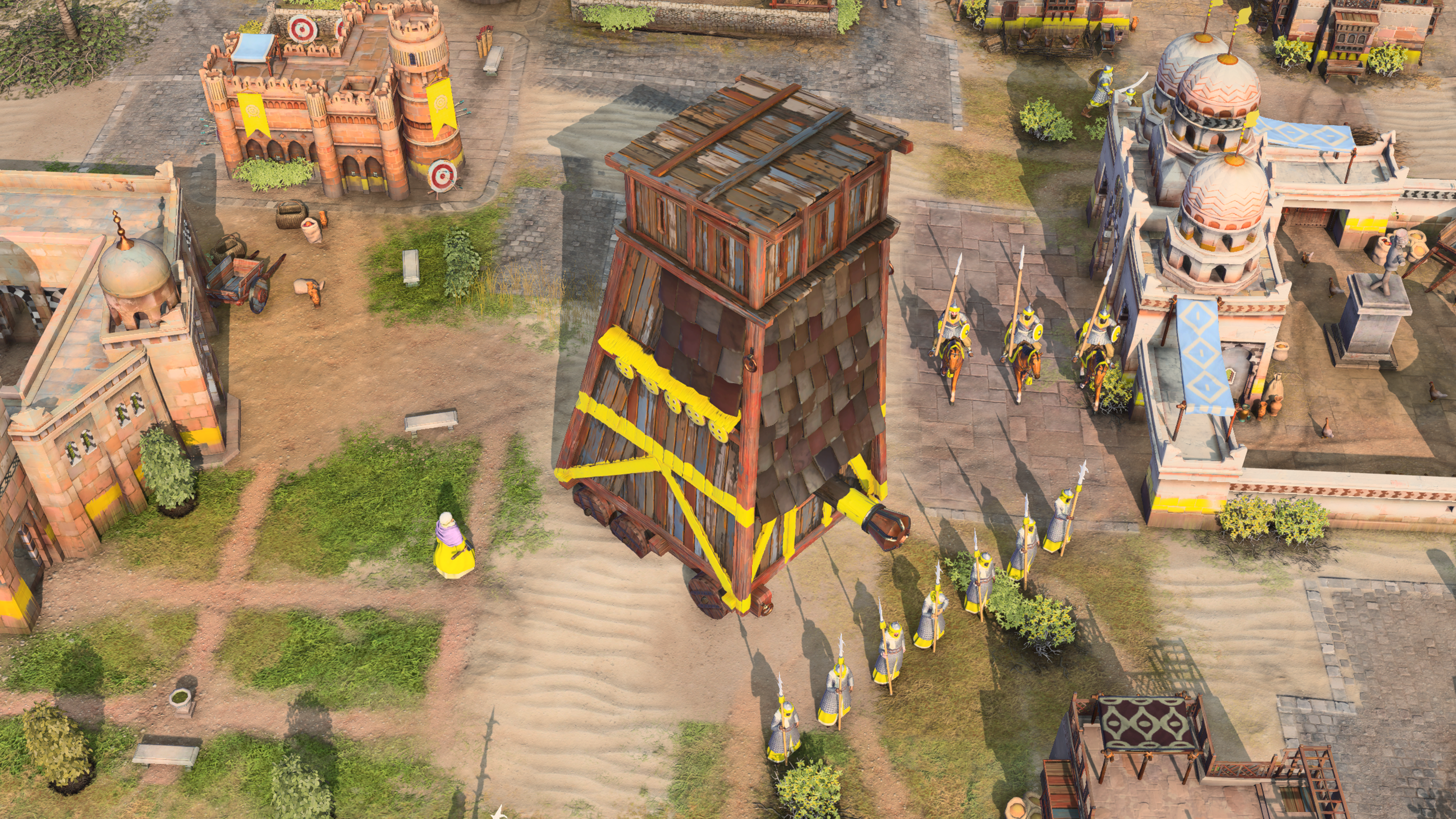 The Tower of the Sultan fires arrows while ramming down buildings. Costing immense amounts of resources to produce, this lumbering siege weapon demolishes enemy cities and is extremely difficult to take down.